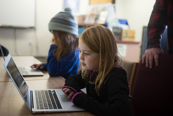 Braintree Elementary School students work on a computer programming course Tuesday morning. (Herald / Tim Calabro)